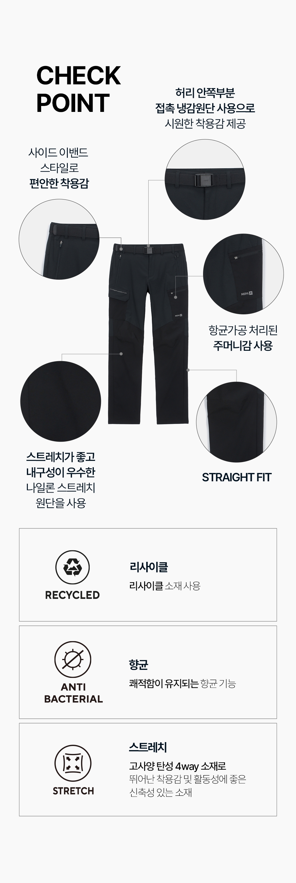 - 허리 안쪽부분 접촉 냉감원단 사용으로 시원한 착용감 제공