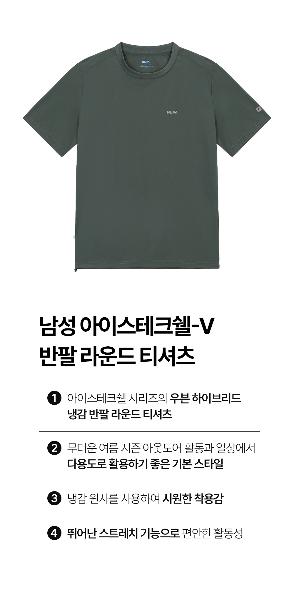 남성 아이스테크쉘 반팔 라운드 티셔츠