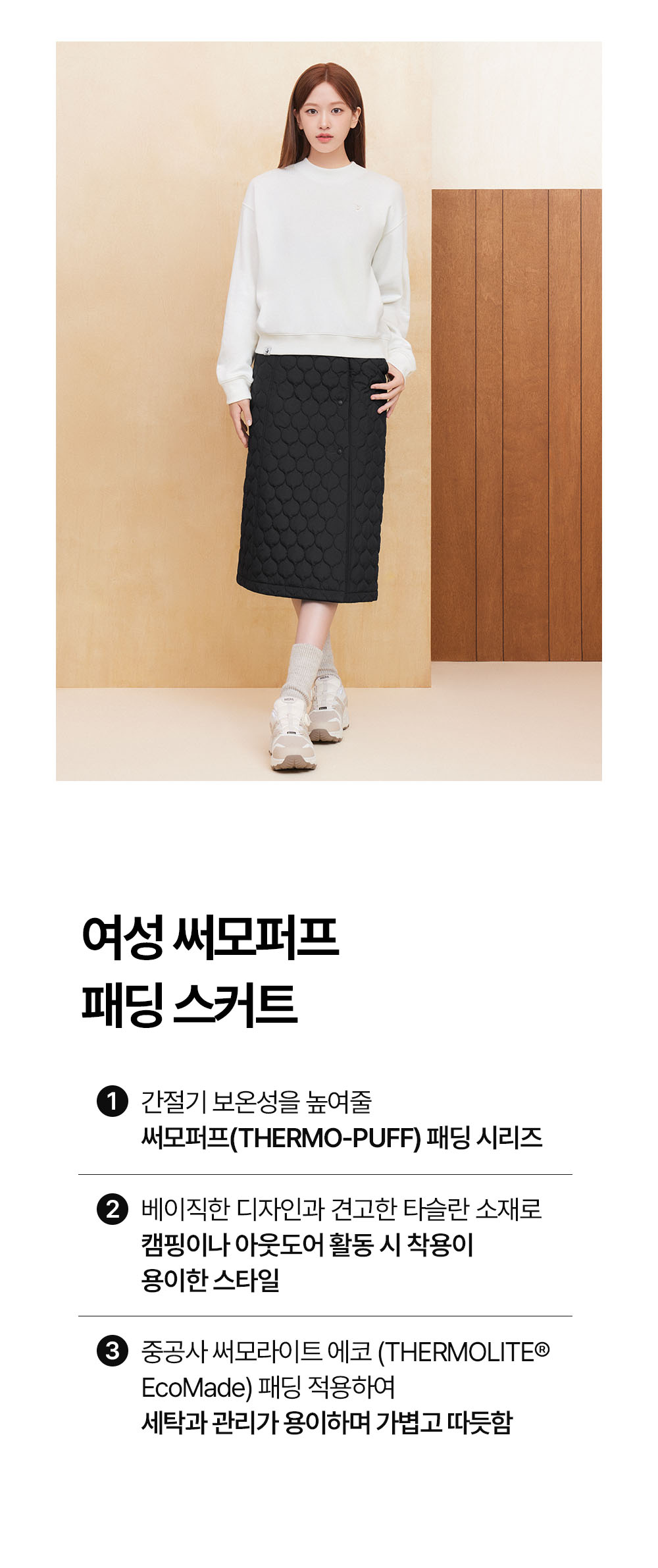 여성 써모퍼프 패딩 스커트