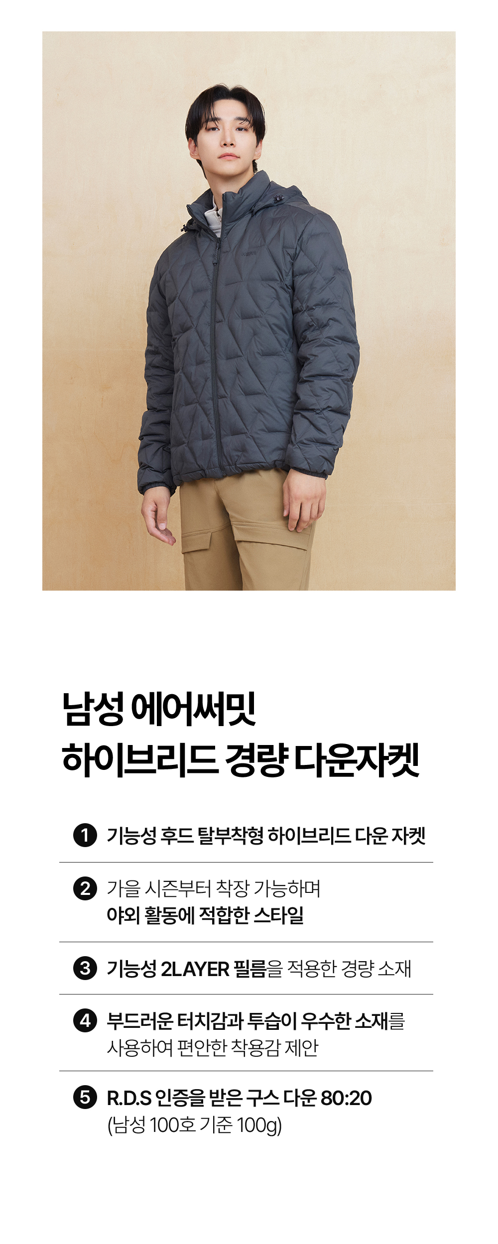 - 기능성 후드 탈부착형 하이브리드 다운 자켓