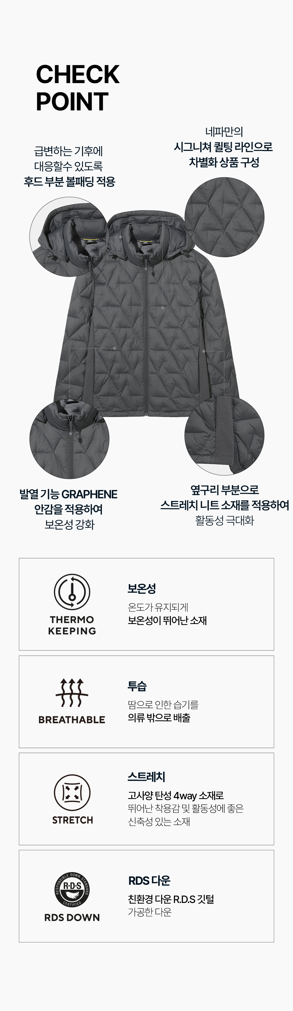 - 발열 기능 GRAPHENE 안감을 적용하여 보온성 강화