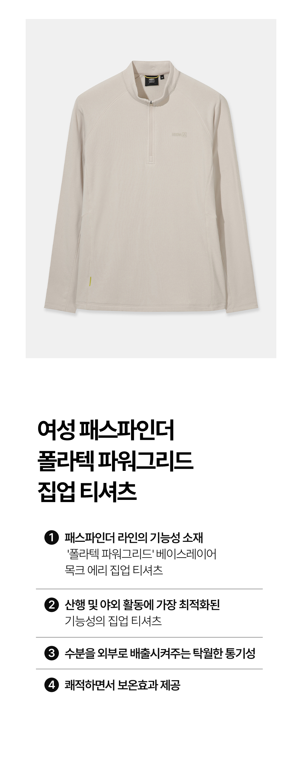 - 패스파인더더 라인의 기능성 소재 '폴라텍 파워그리드' 베이스레이어 목크 에리 집업 티셔츠