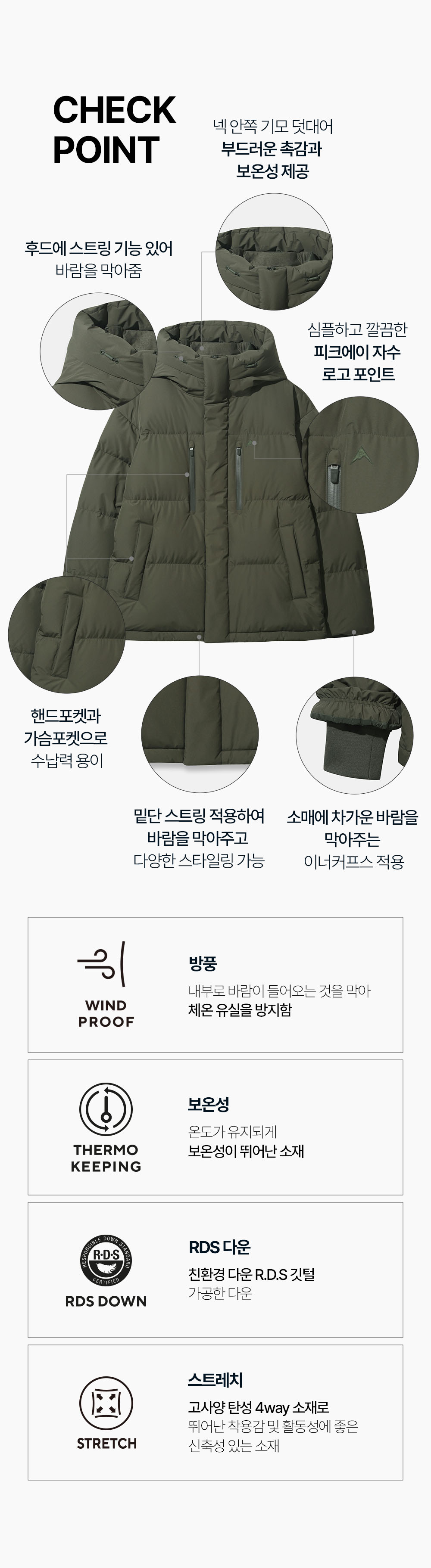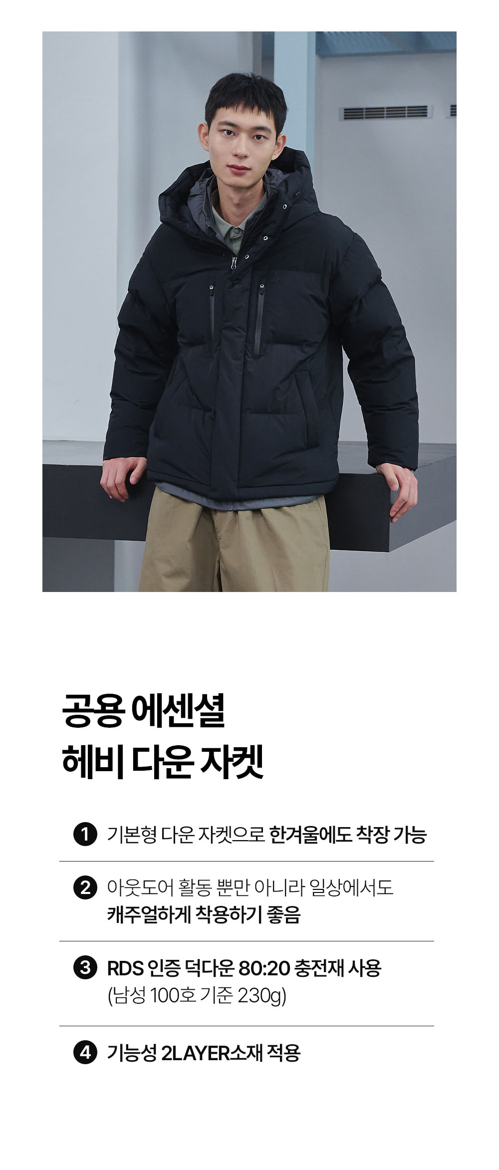 - RDS 인증 덕다운 80:20 충전재 사용 ( 남성 100호 기준 230g )