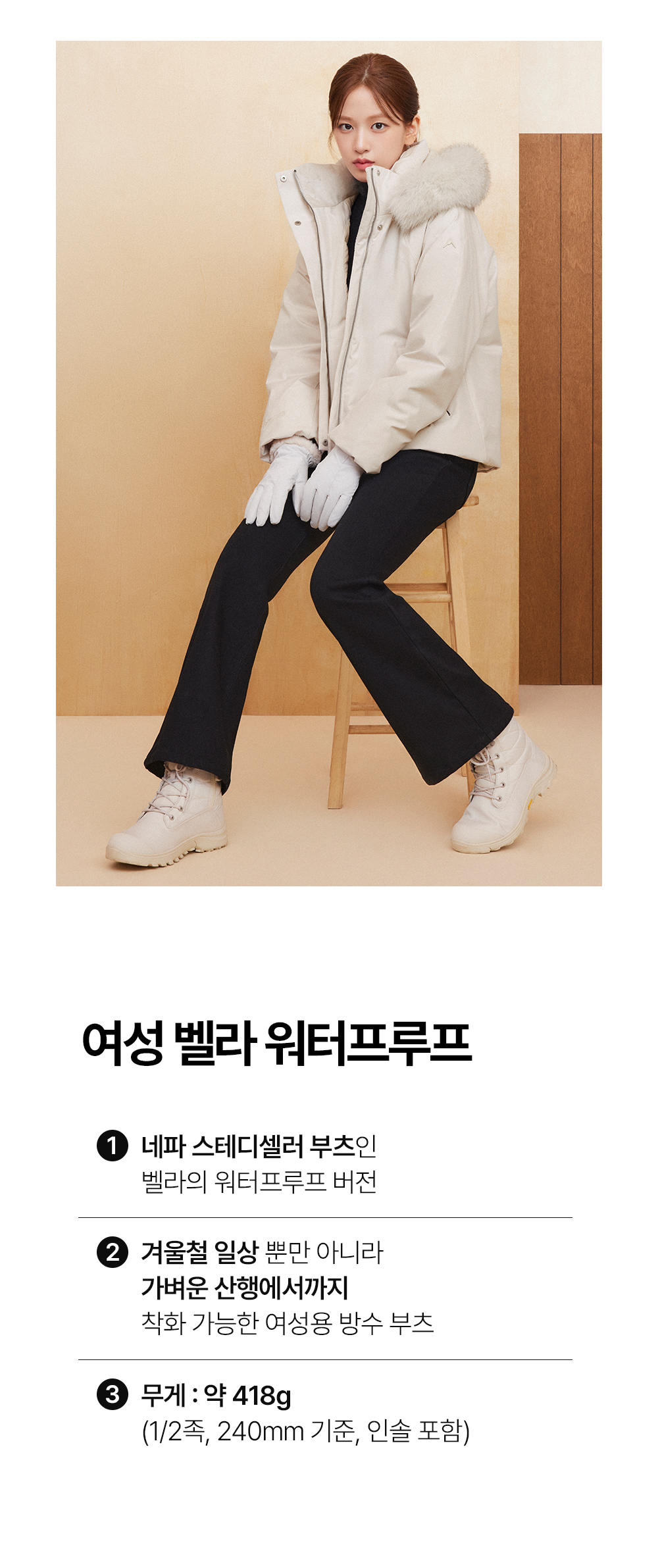 - 네파 스테디셀러 부츠인 벨라의 워터프루프 버전