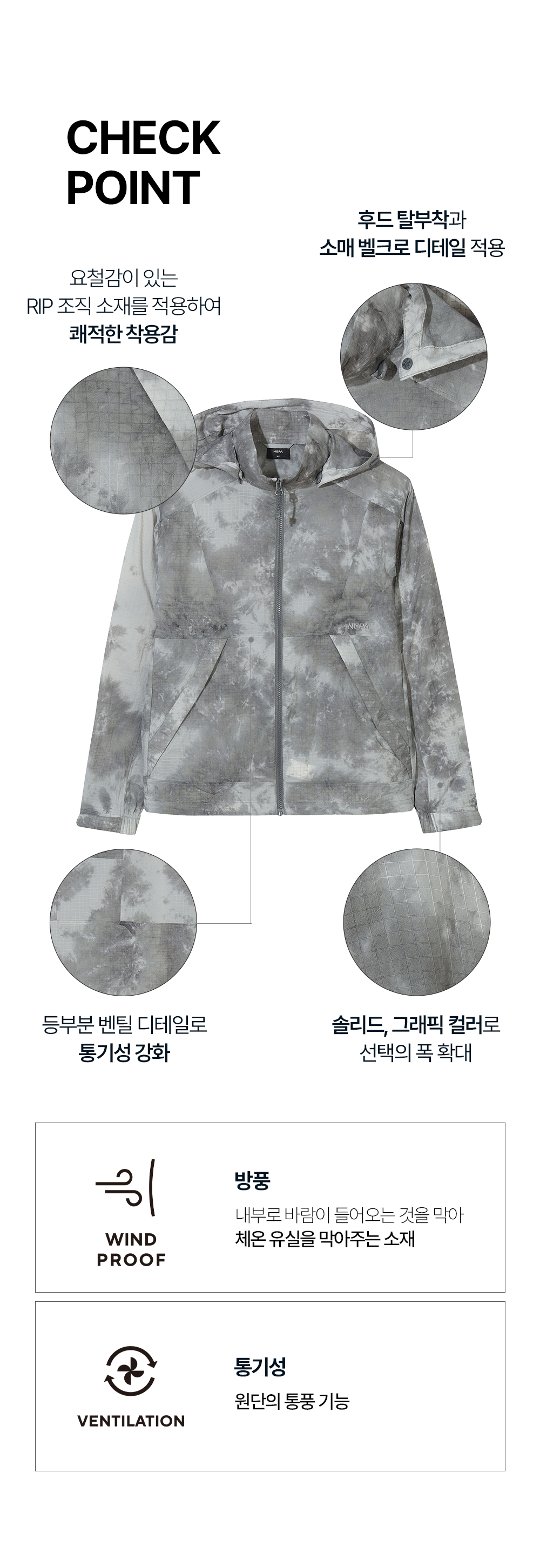 - TIE DYING 그래픽이 적용된 신규 방풍 자켓 상품