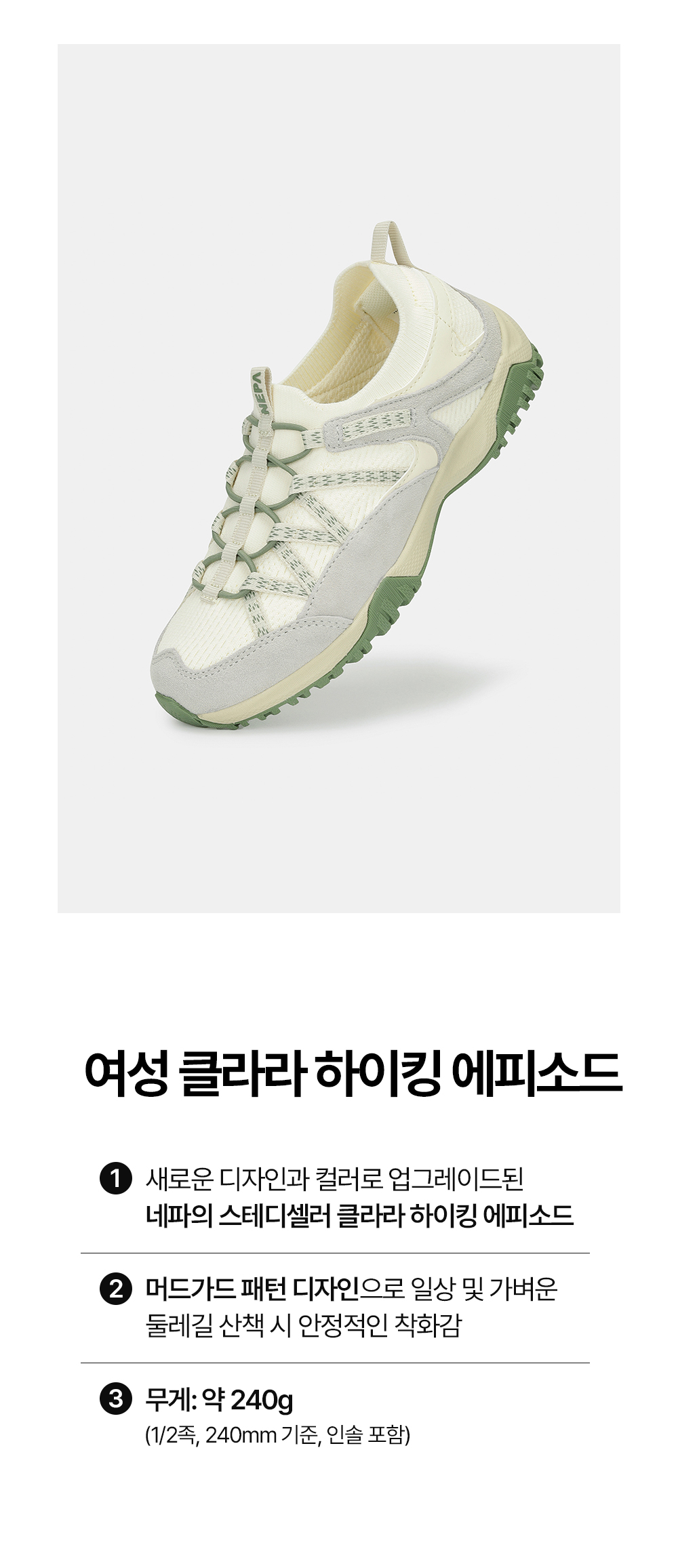 - 새로운 디자인과 컬러로 업그레이드된 네파의 스테디셀러 클라라 하이킹 에피소드