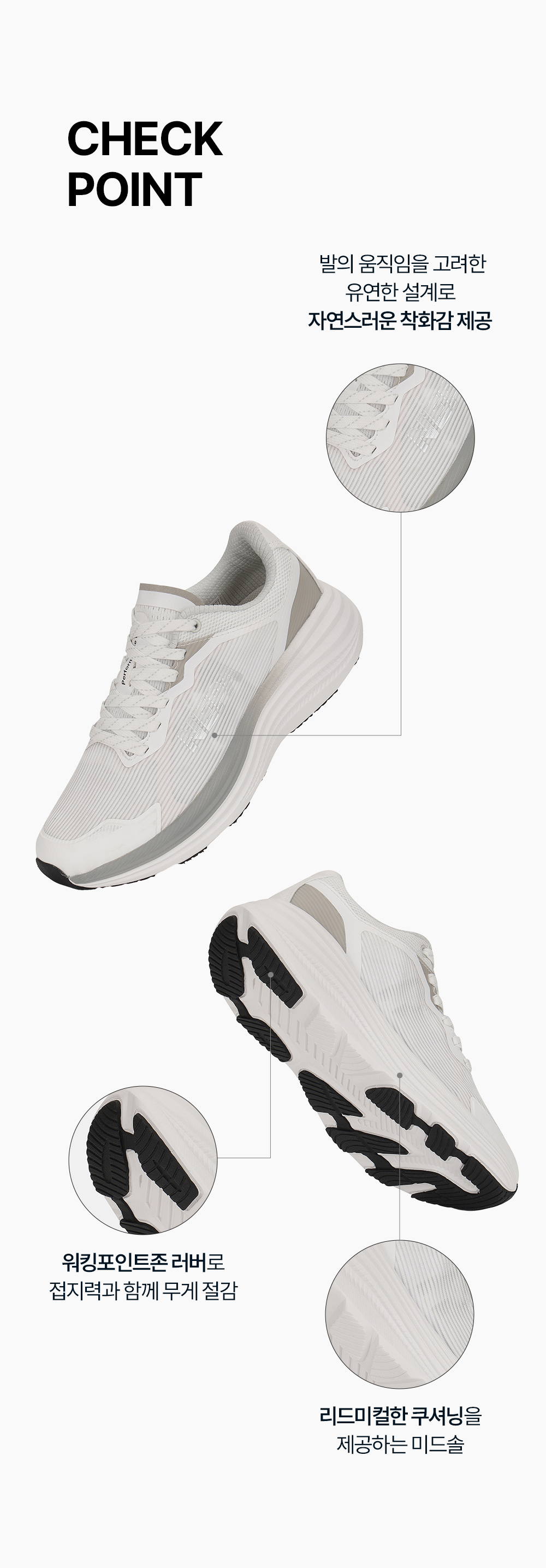 - 워킹포인트존 러버로 접지력과 함께 무게 절감