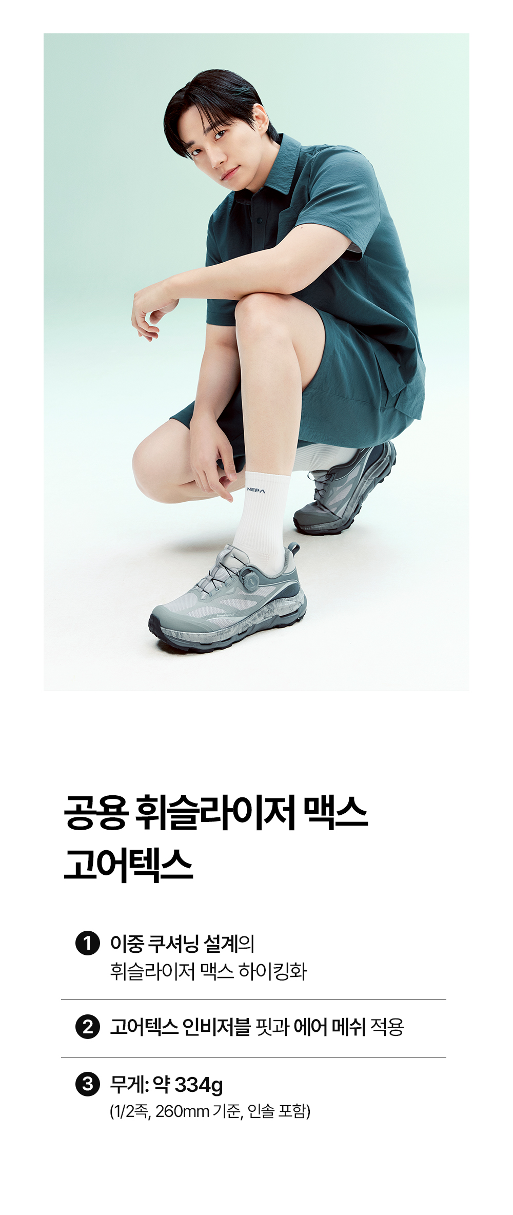 - 고어텍스 인비저블 핏과 함께 에어 메쉬 소재로 보다 뛰어난 통기성